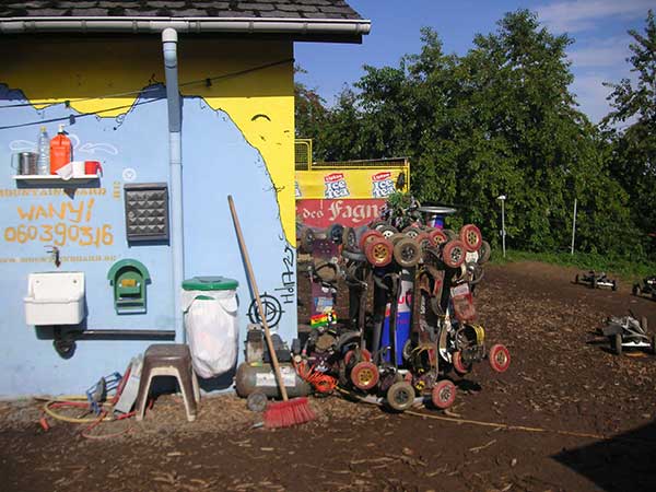 Naast onze piste ligt de gemeentelijke camping waar je voor een prikje kan camperen en van de basisfaciliteiten gebruik maken. Een kampvuurtje kan altijd naast onze skateramp gehouden worden, daar stoor je de nachtrust van onze buurtbewoners niet.